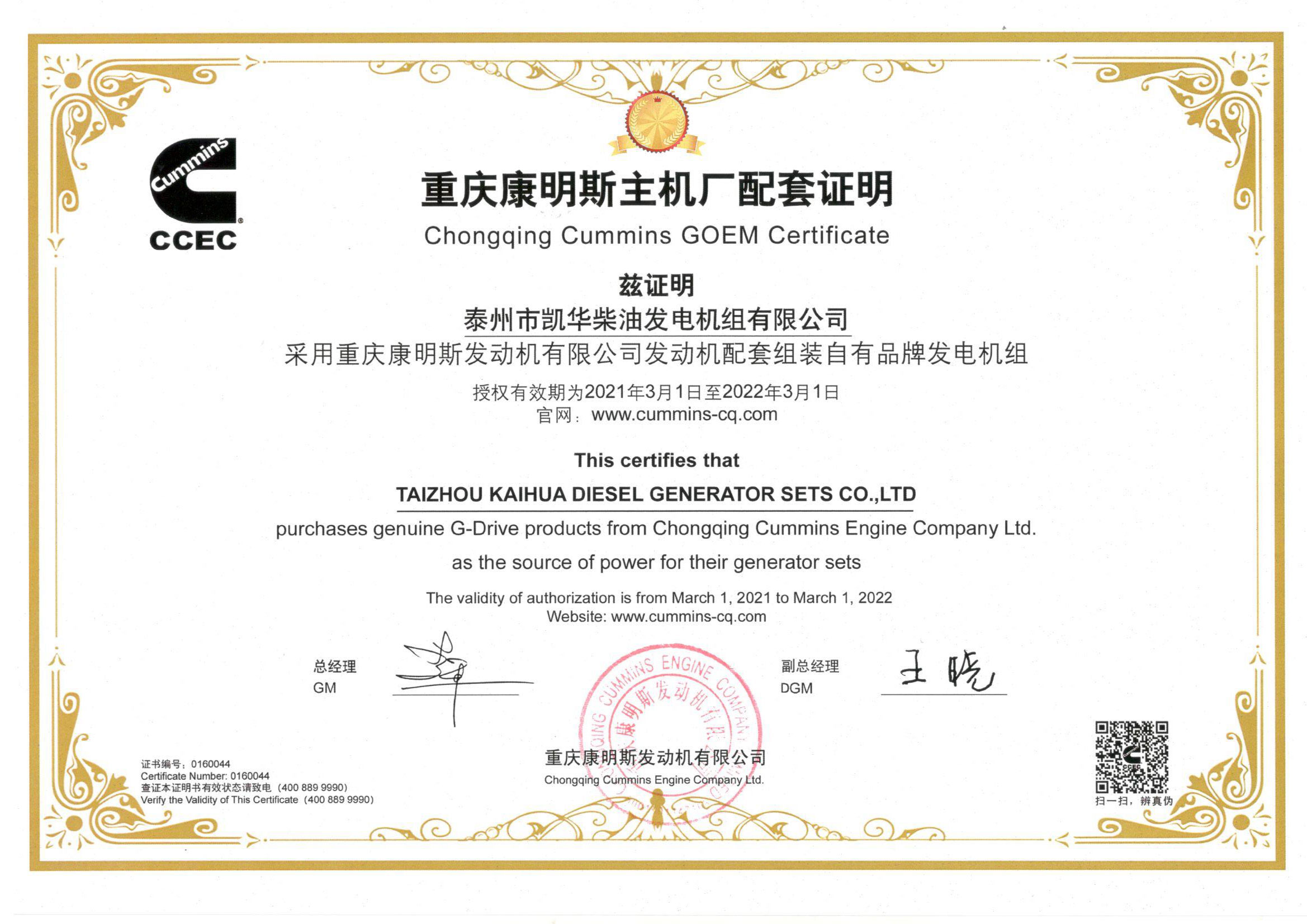 公司主營產(chǎn)品:3~3000KW陸用柴油發(fā)電機(jī)組,15~600KW移動(dòng)拖車電站,12~1000KW船用應(yīng)急柴油發(fā)電機(jī)組,各種靜音型、中高壓、多機(jī)并聯(lián)、燃?xì)獾忍胤N機(jī)組以及進(jìn)口系列柴油發(fā)電機(jī)組,可滿足不同客戶的一切電力需求,還可滿足用戶不同電壓、不同頻率的要求。凱華公司是康明斯品牌的授權(quán)代理商,專業(yè)生產(chǎn)供應(yīng)康明斯柴油發(fā)電機(jī)組。